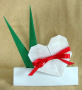 the corner in, even with the cut edge of the paper (or, if you are making the placecard variation, to the crease line that is closer to the middle).